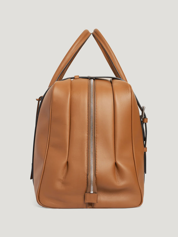 For added security during travel, the bag includes two straps with roller buckles, reminiscent of the classic car bonnet strap. The grip features an external hidden passport pocket, an internal padded laptop sleeve, and several useful internal zippered pockets. It fits as easily into an overhead locker as well as the back of a sports car and is remarkably lightweight and yet hardy.