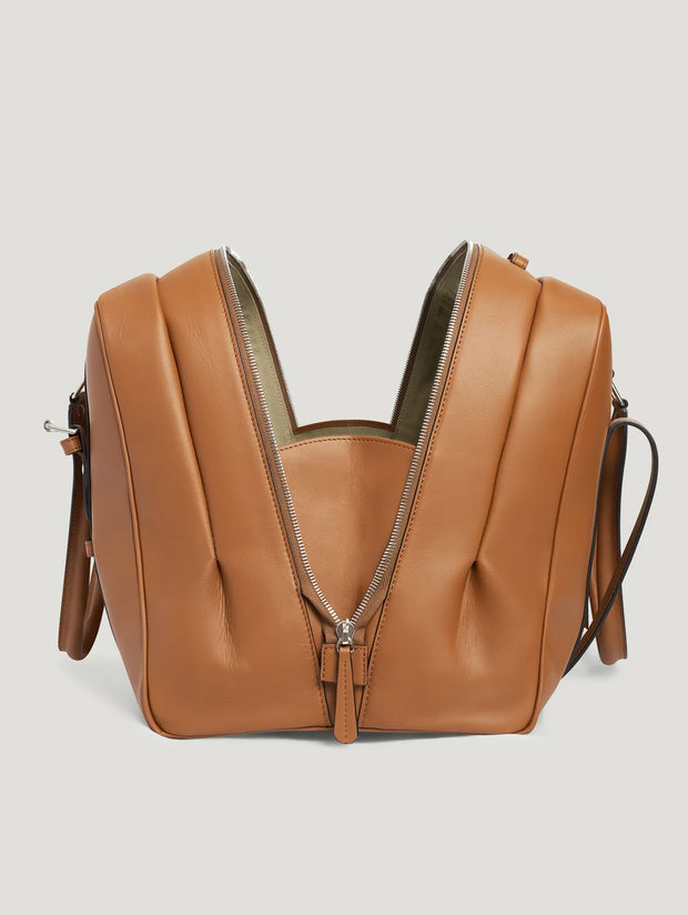 Crafted in Connolly's signature car upholstery leather, the Sports Grip combines a sporty aesthetic with an elegantly structured shape. Its solid brass hardware is palladium-plated and features subtle branded embossing.