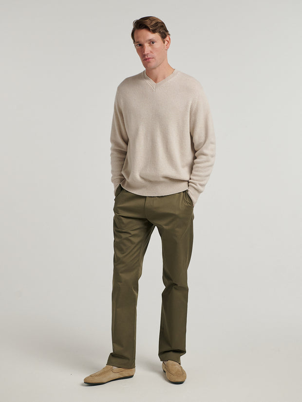 The 4 Ply Favourite V-Neck Sweater updates our iconic 4 Ply Crew Neck for the season. Made from cashmere that has been washed in Scottish waters, the naturally soft water opens the fibers so they bloom, creating a uniquely soft handle and finish. This sweater offers a loftiness that elevates its simple style to something that feels both luxurious and effortlessly casual. Designed for a relaxed fit, with classic ribbing at the collar, cuff and hem. The perfect transitional piece, the V-Neck joins the iconic Crew Neck as perfect blend of comfort, style and versatility.