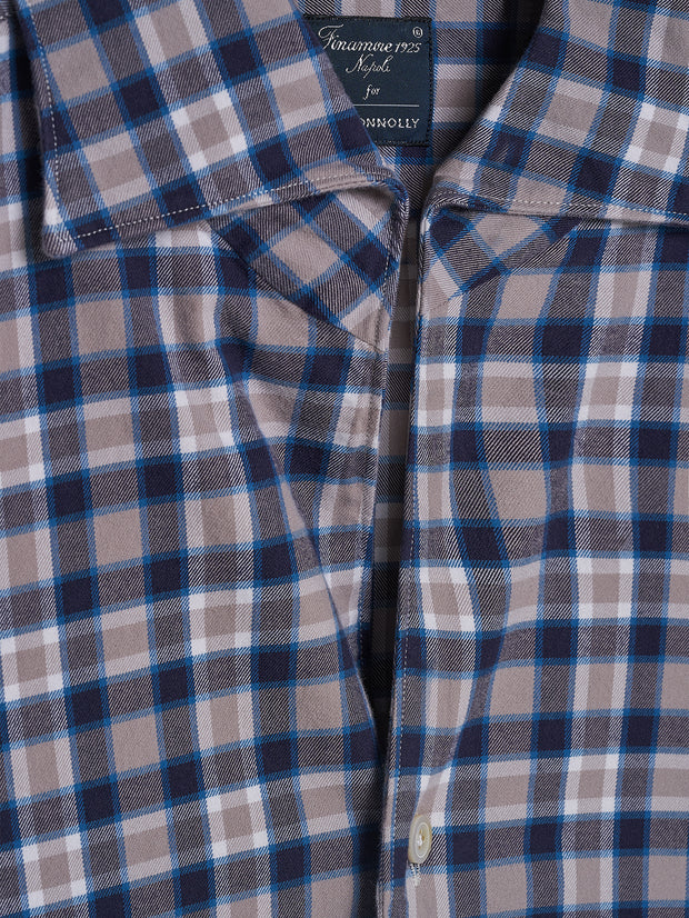 Liquid error (layout/theme line 6): Could not find asset snippets/visually_io_sdk.liquid Beige/ Blue Comfort Hand Finish Shirt– Connolly