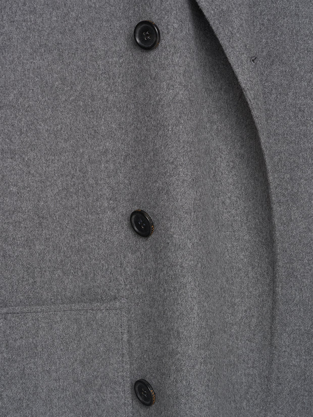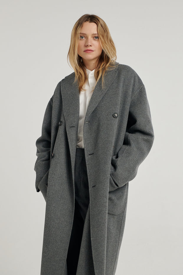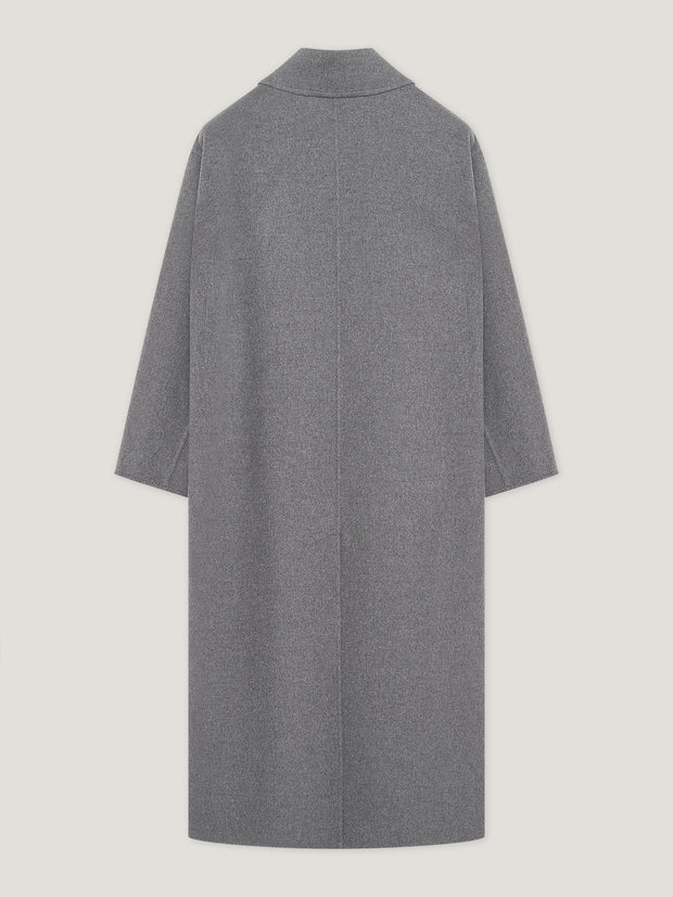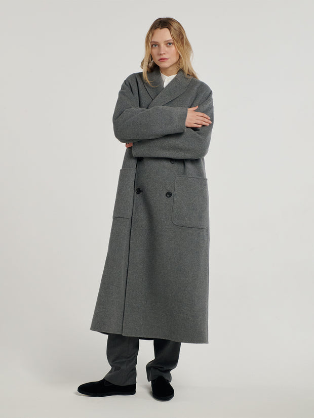 The Great Coat is crafted from Loro Piana double-faced Wish® fabric, a luxurious blend of superfine merino wool and cashmere, creating an exceptionally soft and superior blend. Designed in a longline, slightly oversized silhouette, it features a soft revere collar and a double-breasted front fastened with Connolly-branded dark horn buttons. Thoughtfully detailed with patch pockets and a back vent for ease of movement, this unlined winter coat embodies timeless tailoring.