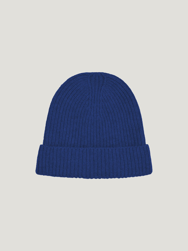 The Barra Beanie, Connolly's take on a classic ribbed beanie, in a blend of Extrafine Merino and Cashmere. An easy unisex style, it features an optional turnback rim, to be worn slouchy, or in the style of a fisherman's beanie.